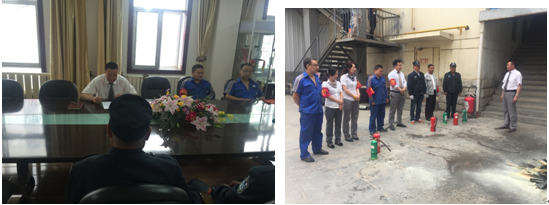 10:30時安全員和義務(wù)消防隊員們開始進行現(xiàn)場滅火演練,通過演習(xí),大家掌握了滅火器和消防栓的使用方法。